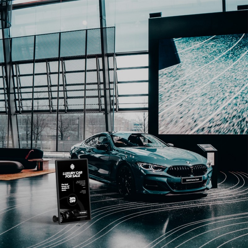 Ce display est idéal pour une installation dans les magasins, restaurants, centres commerciaux ou supermarchés. Il est principalement utilisé à des fins publicitaires, mais il peut aussi servir à des fins informatives.