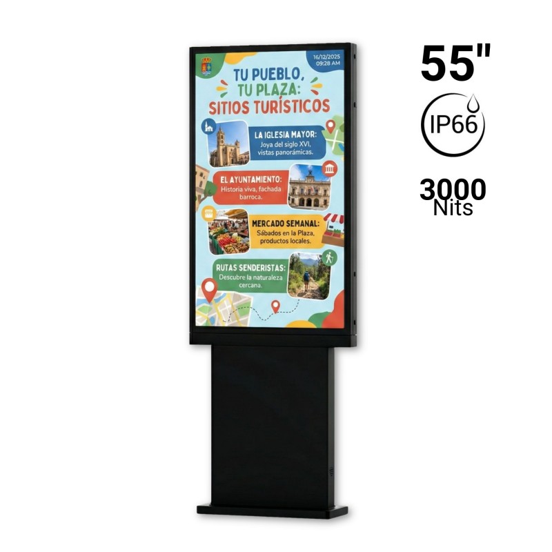 Totem publicitaire numérique pour l'extérieur - Écran tactile Full HD 55" 4K LCD.