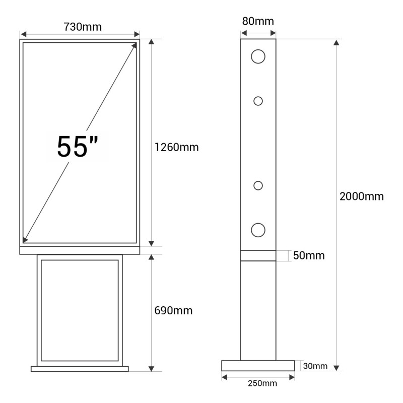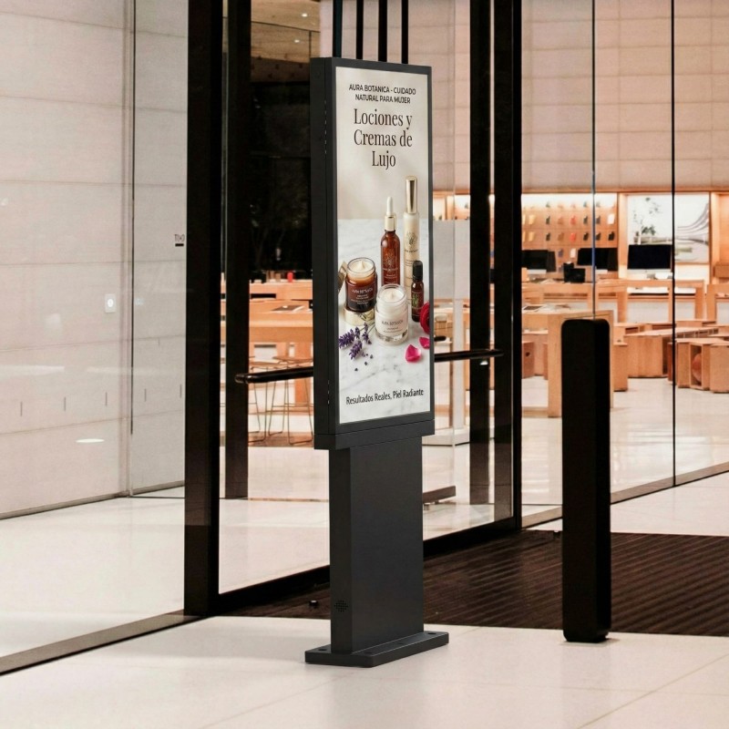 Ce totem est idéal pour être installé dans des endroits tels que les rues, les entrées de magasins ou les centres commerciaux, où il y a beaucoup de passage, afin de maximiser sa visibilité et son impact.