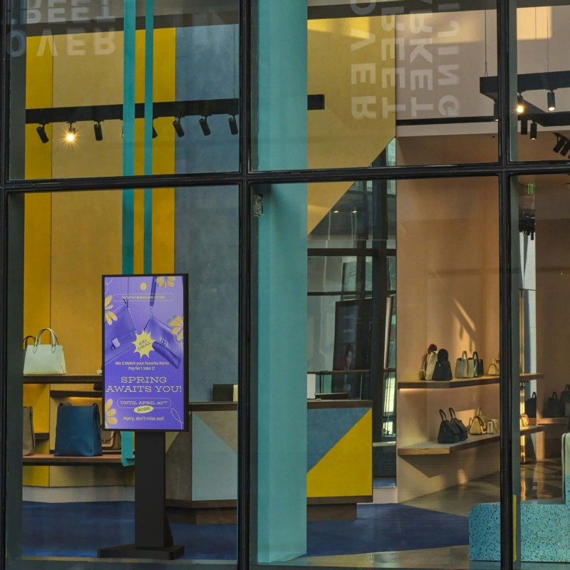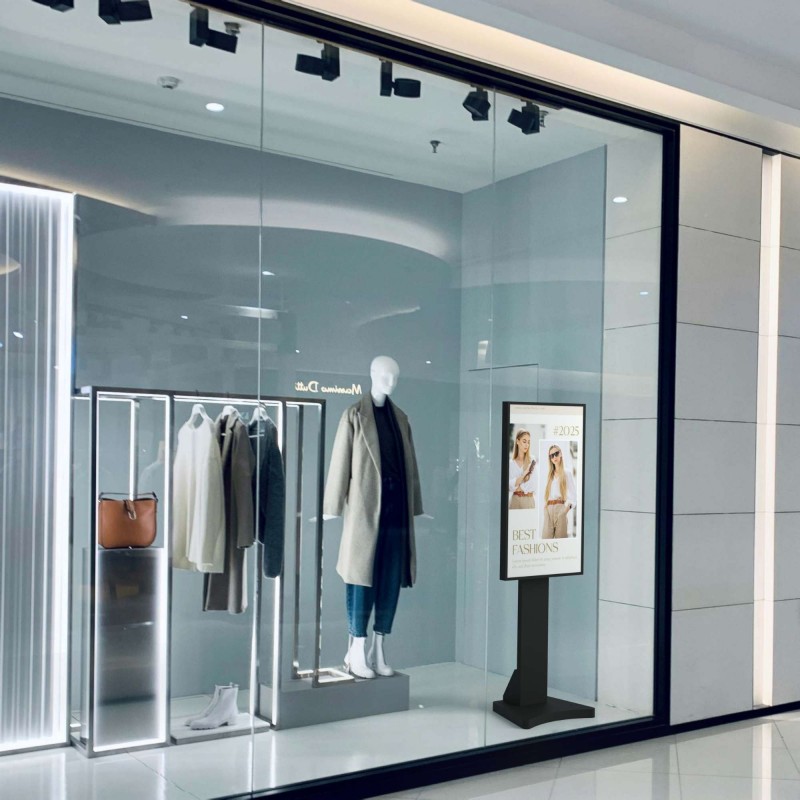 Cet écran est spécialement conçu pour les vitrines de magasins, permettant de diffuser des vidéos promotionnelles, des images, des offres spéciales ou des annonces de nouveaux produits pour attirer le public.