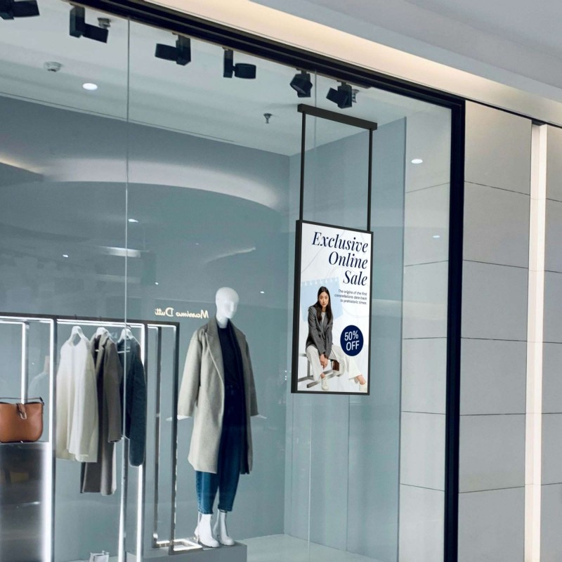 Cet écran est spécialement conçu pour les vitrines de magasins, permettant de diffuser des vidéos promotionnelles, des images, des offres spéciales ou des annonces de nouveaux produits pour attirer le public.
