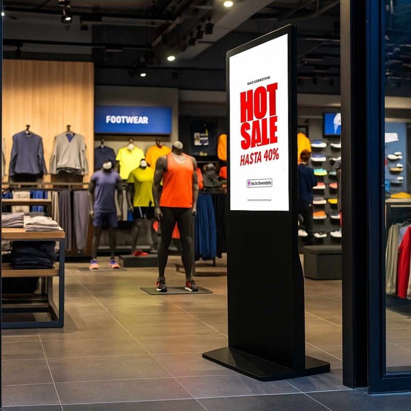 Ce totem est idéal pour être installé dans les centres commerciaux, les magasins, les restaurants, les salles de réunion ou les points de vente où il y a un fort trafic de personnes, maximisant ainsi sa visibilité et son impact.
