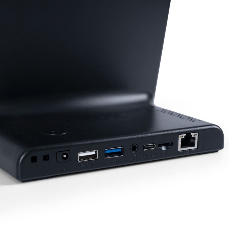 Il dispose d'un système d'exploitation Android, d'une connexion Wifi, de ports USB, USB Type-C, d'une connexion LAN/RJ45 et d'une sortie écouteurs.