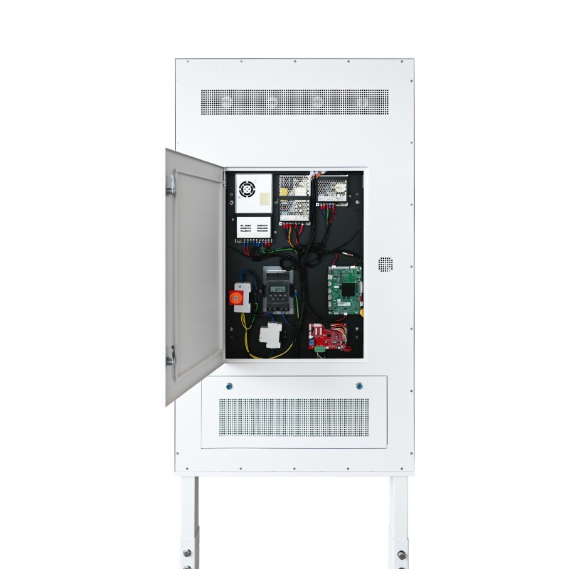 La fonction marche/arrêt est commandée par un interrupteur interne ou programmée via l'application préinstallée. Avec cette fonctionnalité, il est possible de gérer facilement l'affichage publicitaire et d'adapter le contenu en fonction des besoins.