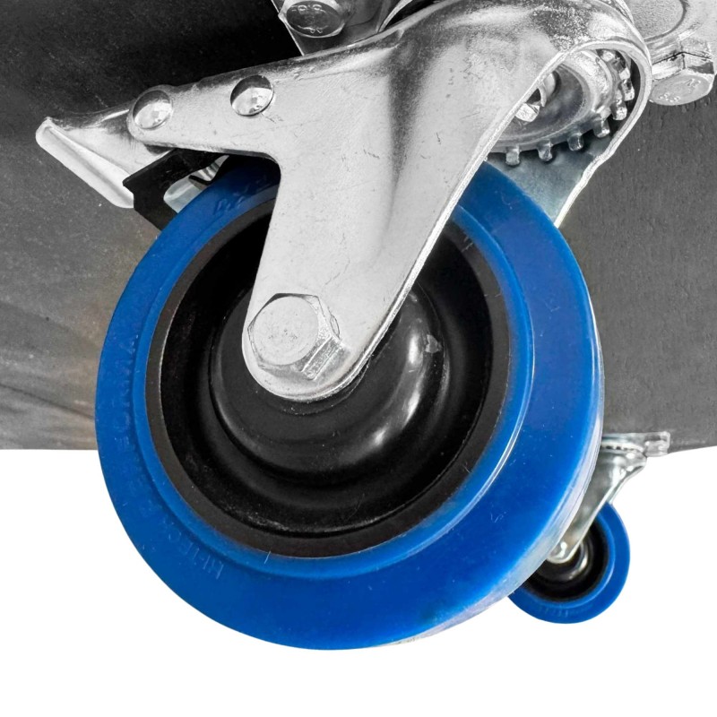 - Quatre roues haute résistance : Pivotantes avec frein, pour un déplacement fluide et contrôlé dans les allées et sols d’événement.