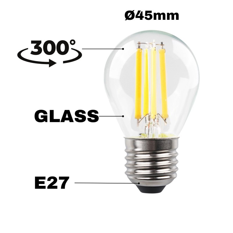 Ampoule LED à filament sphérique - E27 G45 - 3,8 W - Transparent
