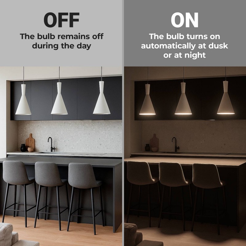 Oubliez d’allumer et d’éteindre les lumières manuellement. Cette ampoule LED avec capteur crépusculaire détecte automatiquement l’obscurité (<20Lux) pour éclairer votre maison de manière efficace et sûre.