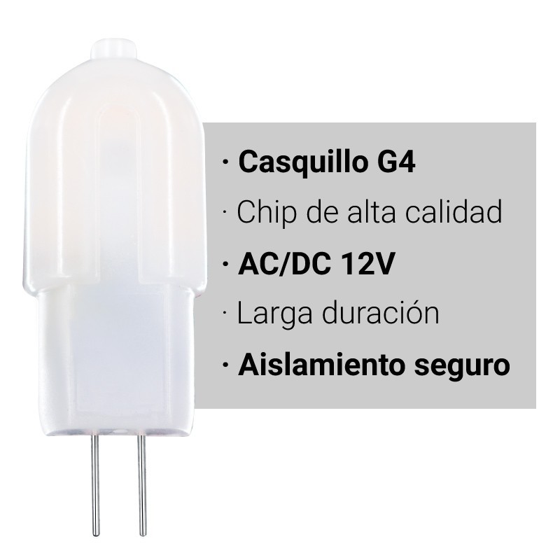 Les ampoules LED G4 sont idéales pour les caravanes, les bateaux, le camping, les intérieurs, les meubles, les cuisines, les vitrines, etc. Ils remplacent les halogènes jusqu'à 18 Watt..