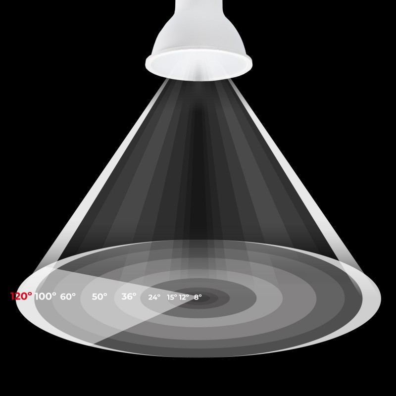 • Angle d'ouverture de 120° : Offre un éclairage large et homogène sans scintillement.
