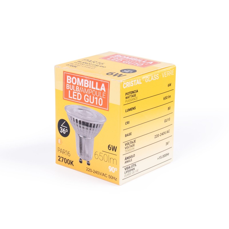 Ampoule LED GU10 6W verre - 130lm/W - PAR16 - 36°