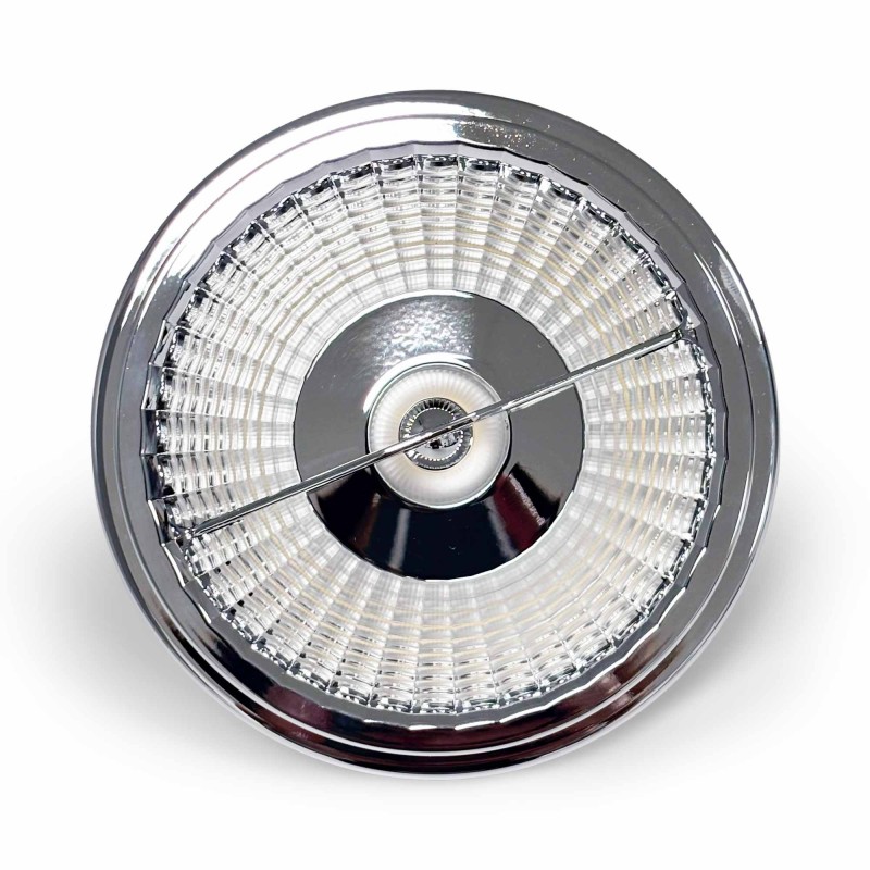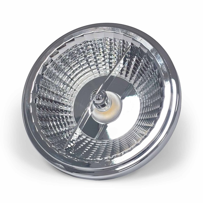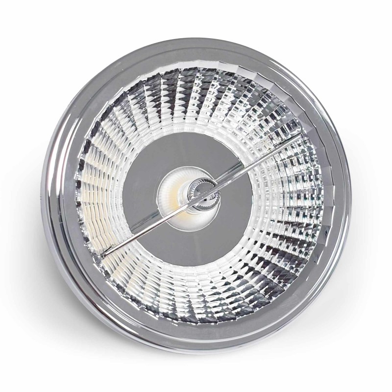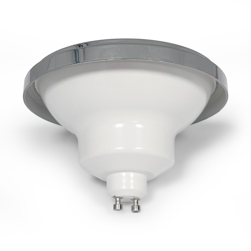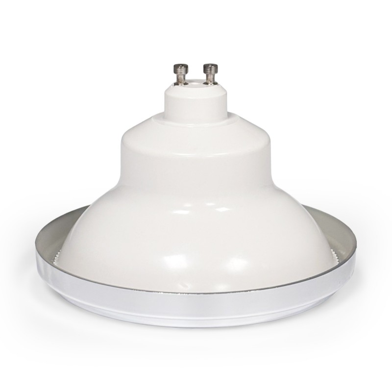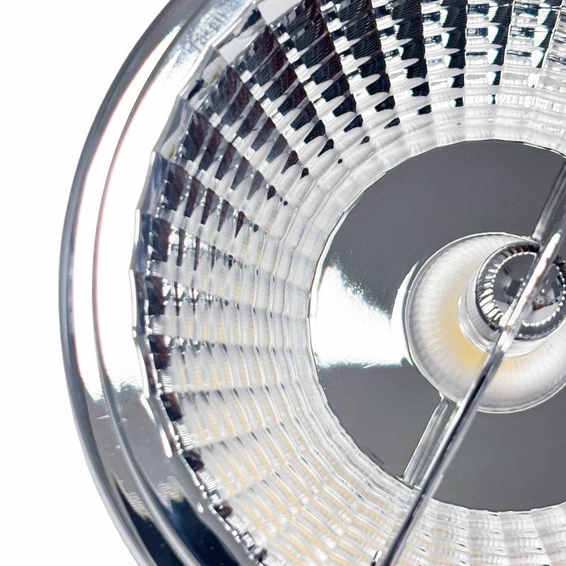 Ampoule LED AR111 dimmable avec douille GU10, disponible en blanc froid (6500K), blanc neutre (4000K) et blanc chaud (3000K).