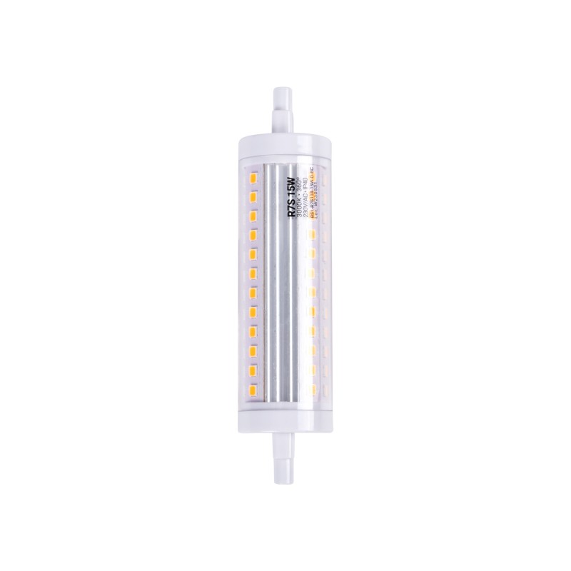 L'ampoule LED R7S offre une excellente efficacité lumineuse de plus de 80 lm/W, avec une puissance de 15W et une luminosité de 1700 lumens.