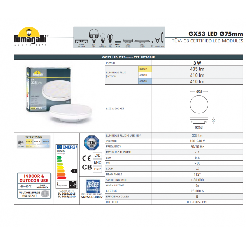 - Puissance : 3 W LED, lumière neutre 4000 K ou CCT réglable.