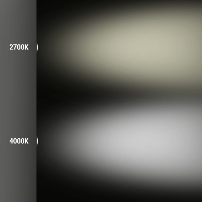 - CCT réglable : avec un indice de rendu des couleurs élevé (CRI>80), elle permet de choisir entre le blanc chaud (2700K) et le blanc neutre (4000K).
