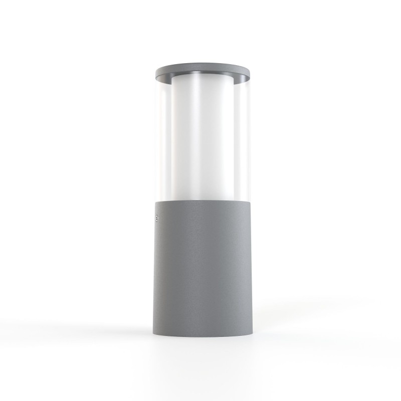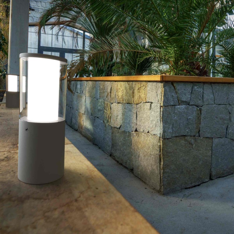Borne de petite taille (25 cm) pour l'éclairage des allées, au design moderne, de forme tubulaire, réalisée en résine antichoc, résistante à la rouille, à la corrosion et aux rayons UV.