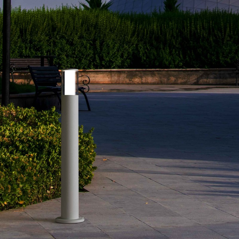 Borne de grande taille (80 cm) pour l'éclairage des allées, au design moderne, de forme tubulaire, réalisée en résine antichoc, résistante à la rouille, à la corrosion et aux rayons UV.