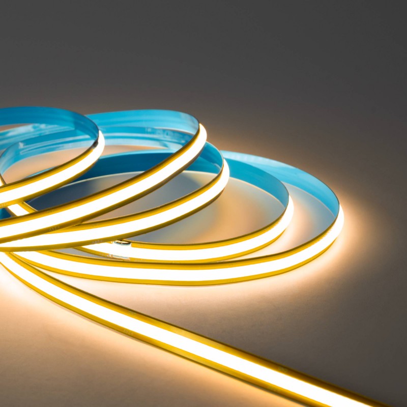 Le ruban LED COB monocolore 24V DC offre une éclairage continu et sans ombres grâce à sa technologie avancée.