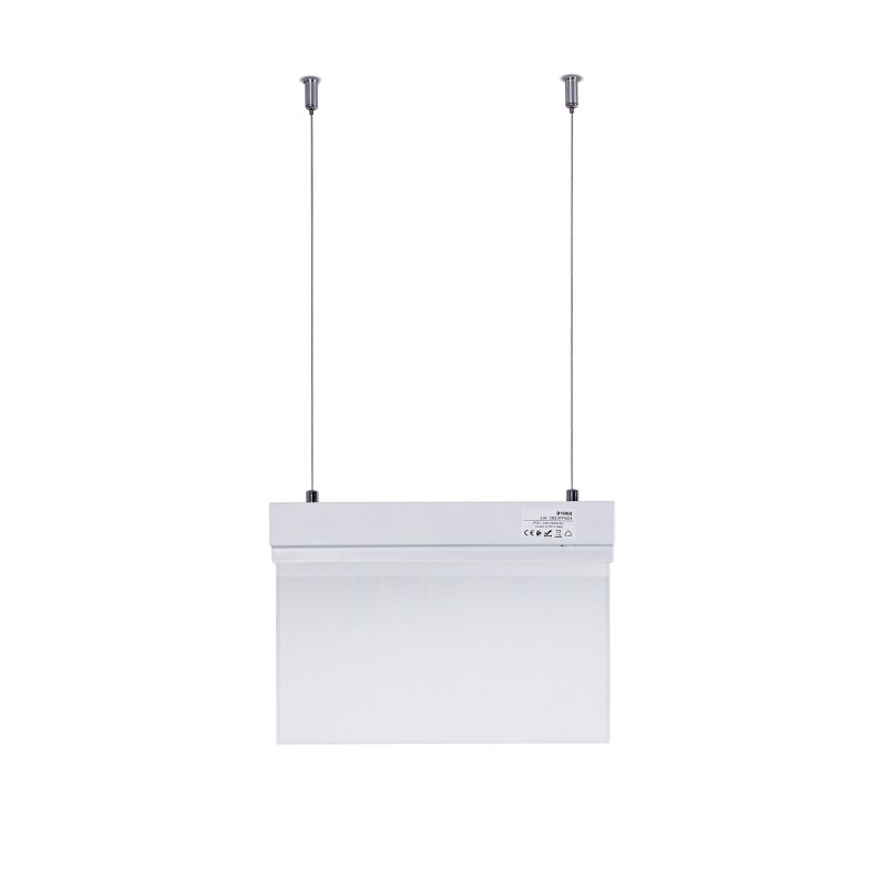 Ce luminaire de secours est destiné à être suspendu au plafond. Les câbles de suspension et tout le matériel de montage nécessaire sont inclus.