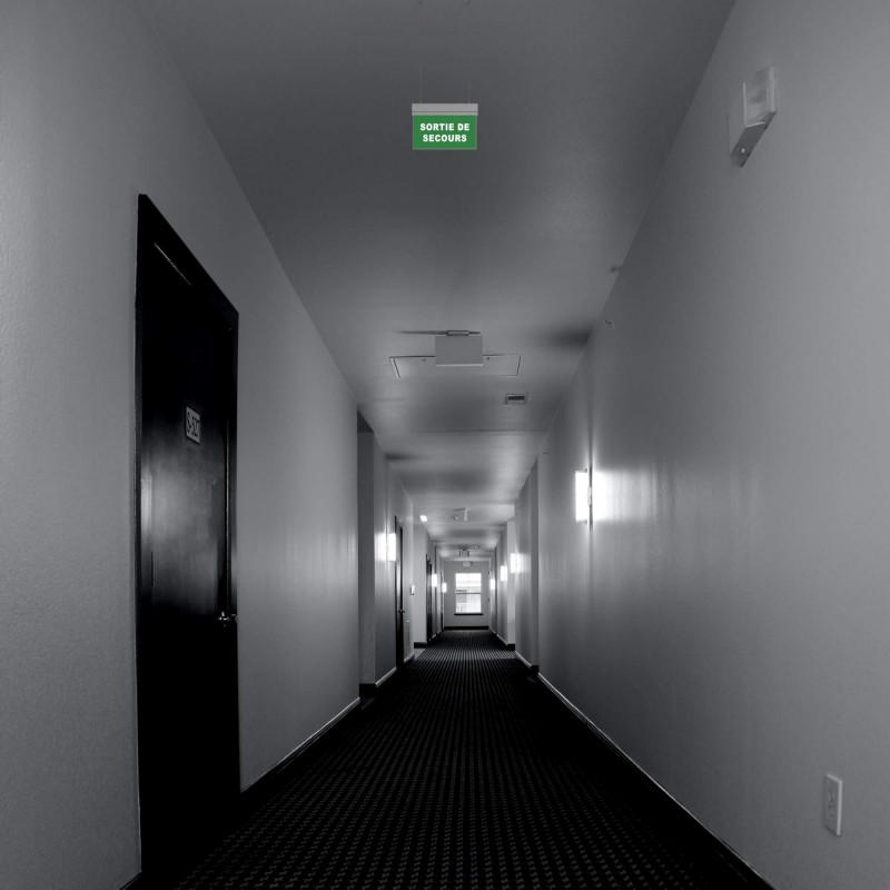 Bloc autonome d'éclairage de sécurité avec panneau "SORTIE DE SECOURS" - Suspension