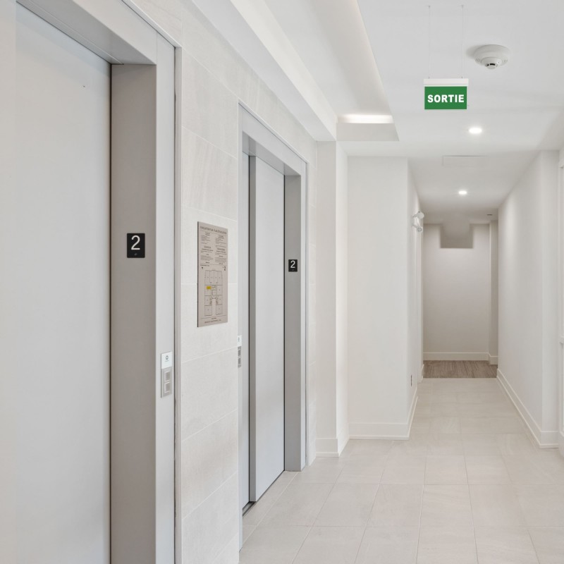Elle est équipée de deux étiquettes autocollantes identiques, faciles à fixer sur la plaque transparente prévue à cet effet, assurant une signalisation claire pour la localisation de la sortie. Ces deux étiquettes sont fournies pour une installation de chaque côté de la plaque, garantissant ainsi une visibilité maximale.