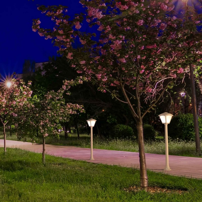Ce lampadaire d'extérieur présente un design moderne et un indice de protection IP55, ce qui le rend adapté à une installation en extérieur, résistant aux facteurs externes tels que la poussière et l'humidité.