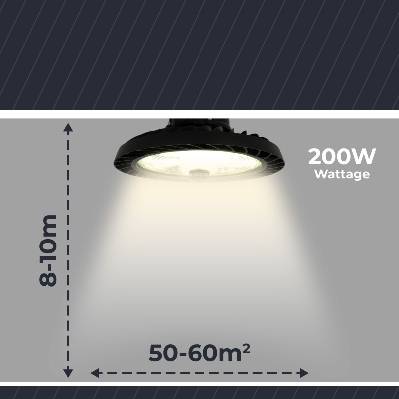 - Efficacité maximale : cette hotte offre une efficacité lumineuse de 170 lm/W, fournissant un éclairage de haute qualité qui assure la clarté et le confort visuel dans les grands espaces.