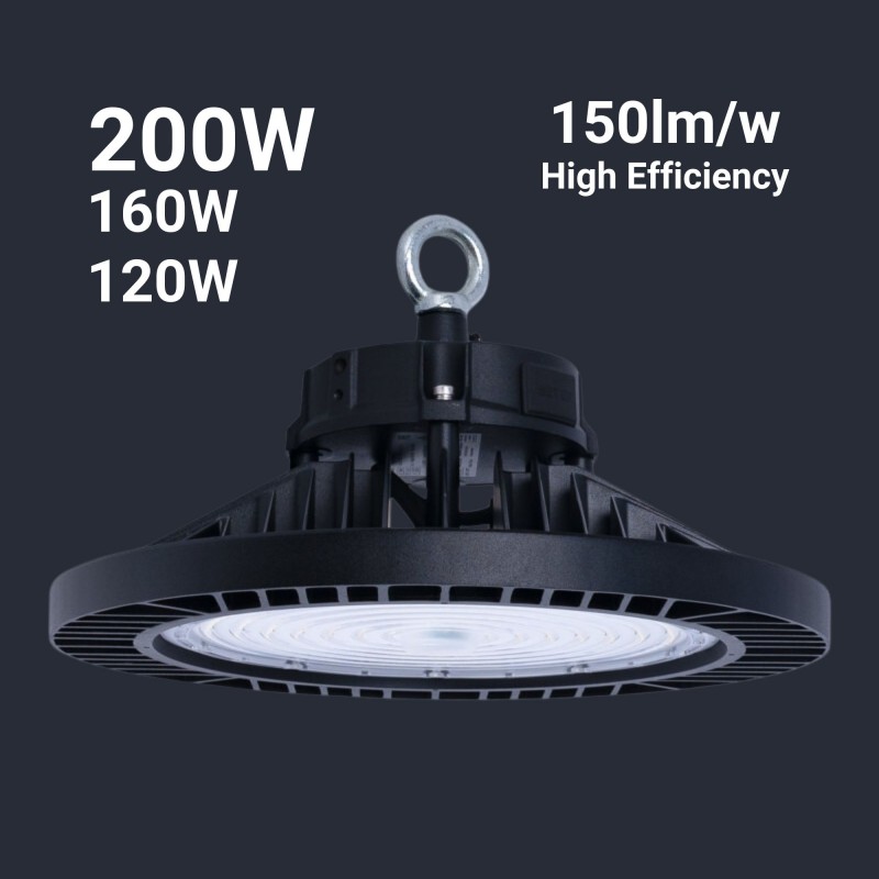 Sa capacité d'ajustement de puissance (120W / 160W / 200W) grâce à un DIP Switch permet d'adapter la lumière aux besoins spécifiques de l'espace, optimisant ainsi la consommation énergétique sans compromettre la qualité lumineuse.