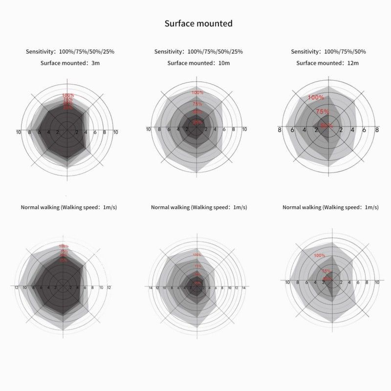 - Angle de détection : 150° (montage mural) et 360° (montage au plafond)