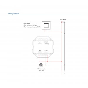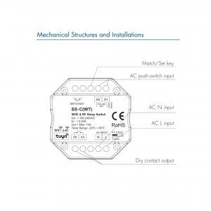 - Contrôle RF et interrupteur à poussoir : compatible avec les contrôleurs RF de 2,4 GHz. Permet l'ajout d'un interrupteur externe pour un contrôle physique ON/OFF.