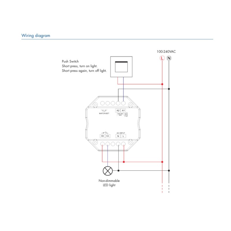 Offre une solution polyvalente pour le contrôle des luminaires ou des dispositifs non graduables, combinant le contrôle WiFi, la RF 2,4GHz et l'entrée par bouton-poussoir dans un seul appareil compact.