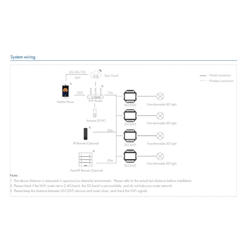 - Fonction convertisseur WiFi-RF : Il peut contrôler un ou plusieurs contrôleurs ou pilotes RF synchronisés depuis l'appli, agissant comme un pont WiFi-RF.
