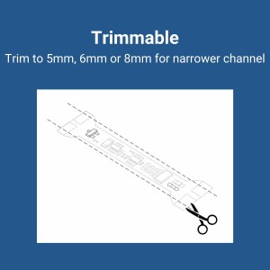 Installé sur des circuits imprimés de 10 mm de large, ce détecteur de présence peut être ajusté aux extrémités pour s'adapter à différentes largeurs de rubans LED, variant de 5 mm à 10 mm.