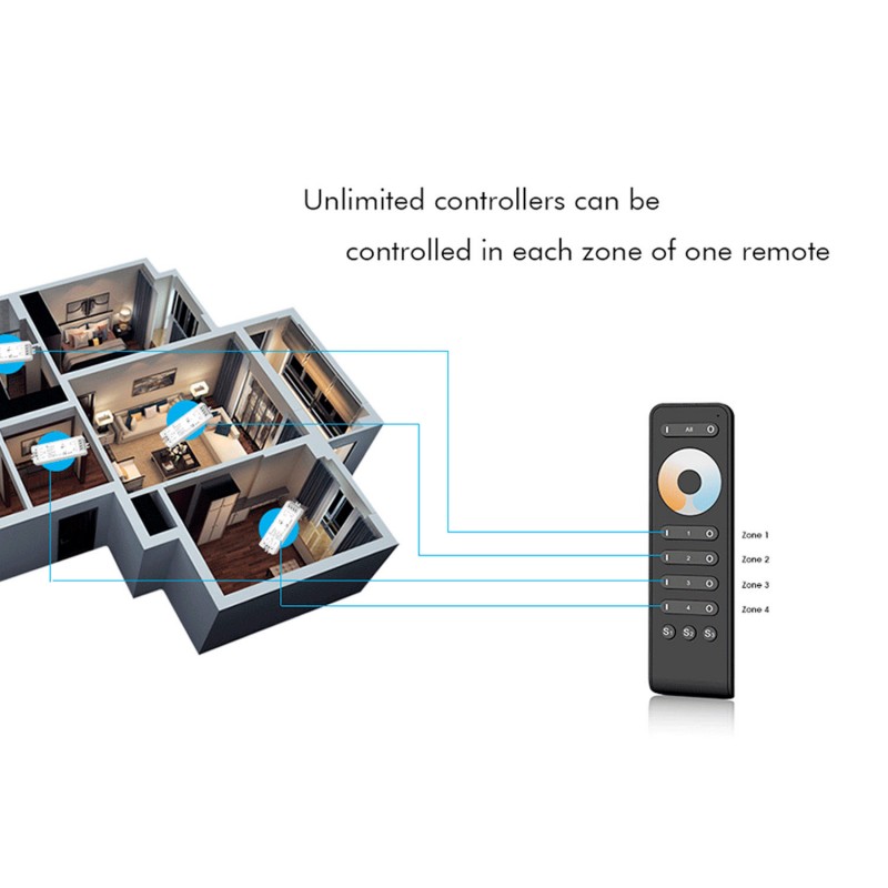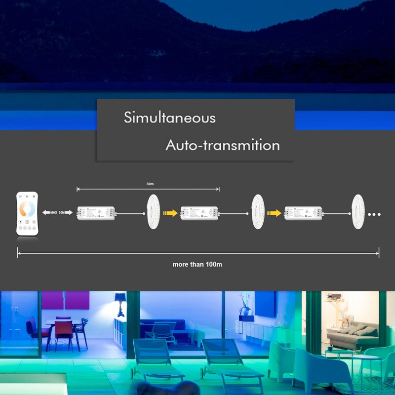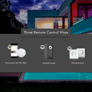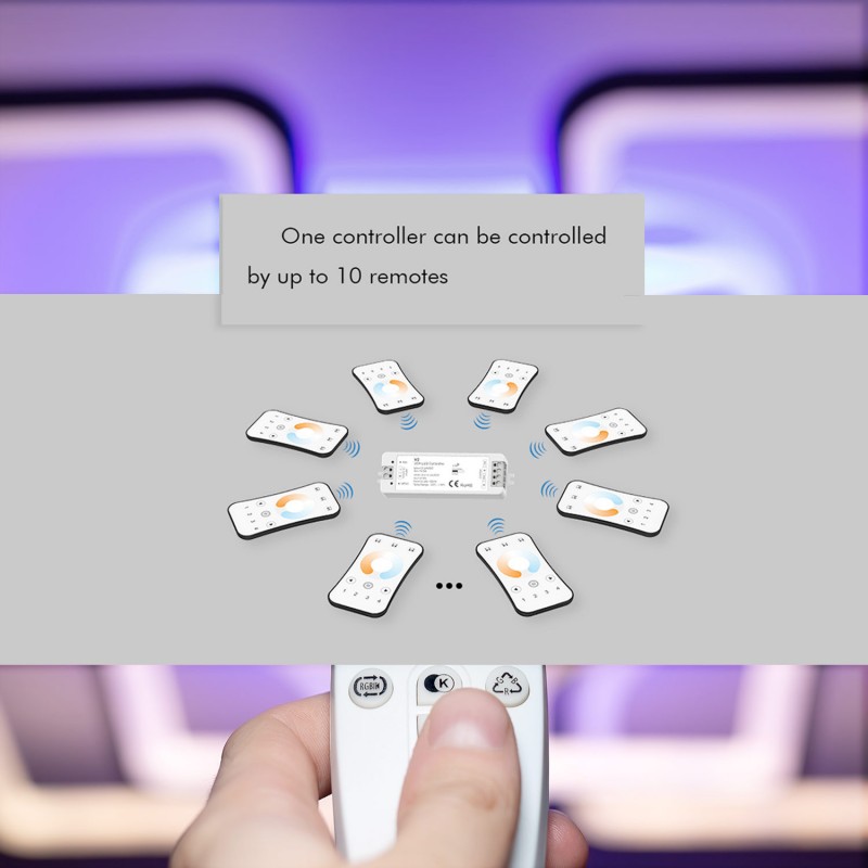 - Télécommande : compatible avec les télécommandes Skydance 2.4G RF, elle permet de régler l'éclairage de n'importe où grâce à des commandes manuelles, murales ou par smartphone (en ajoutant une passerelle Wi-Fi).