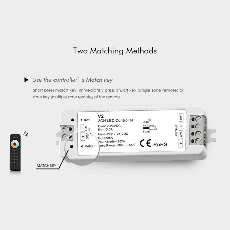 Contrôleur CCT 12-24V DC - 2 canaux - 5A/canal - RF 2.4GHz - Skydance
