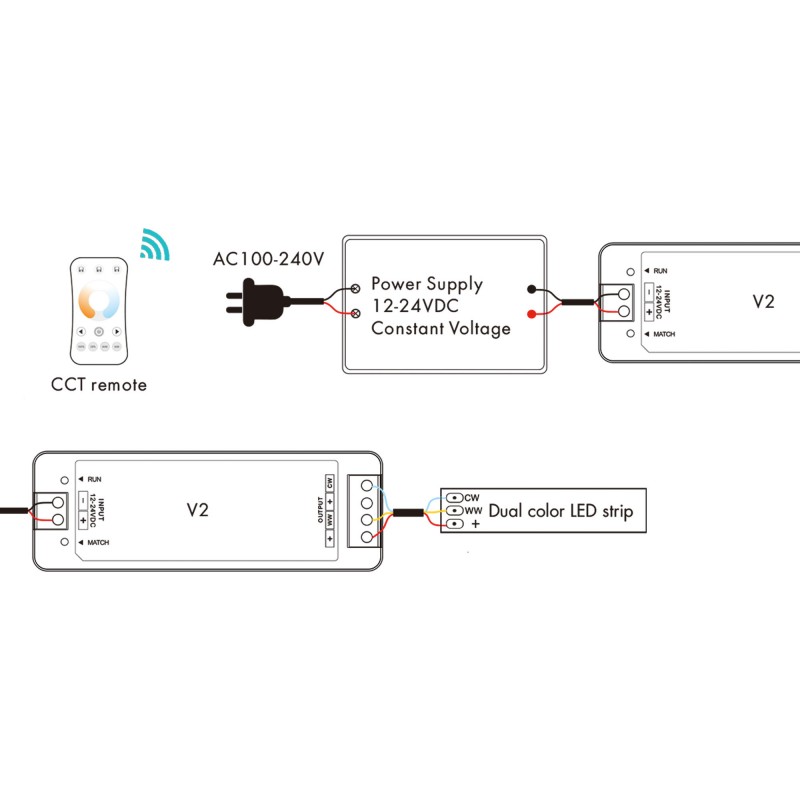 - Compatibilité : compatible avec les télécommandes Skydance CCT et RF 2,4 GHz à canal unique.