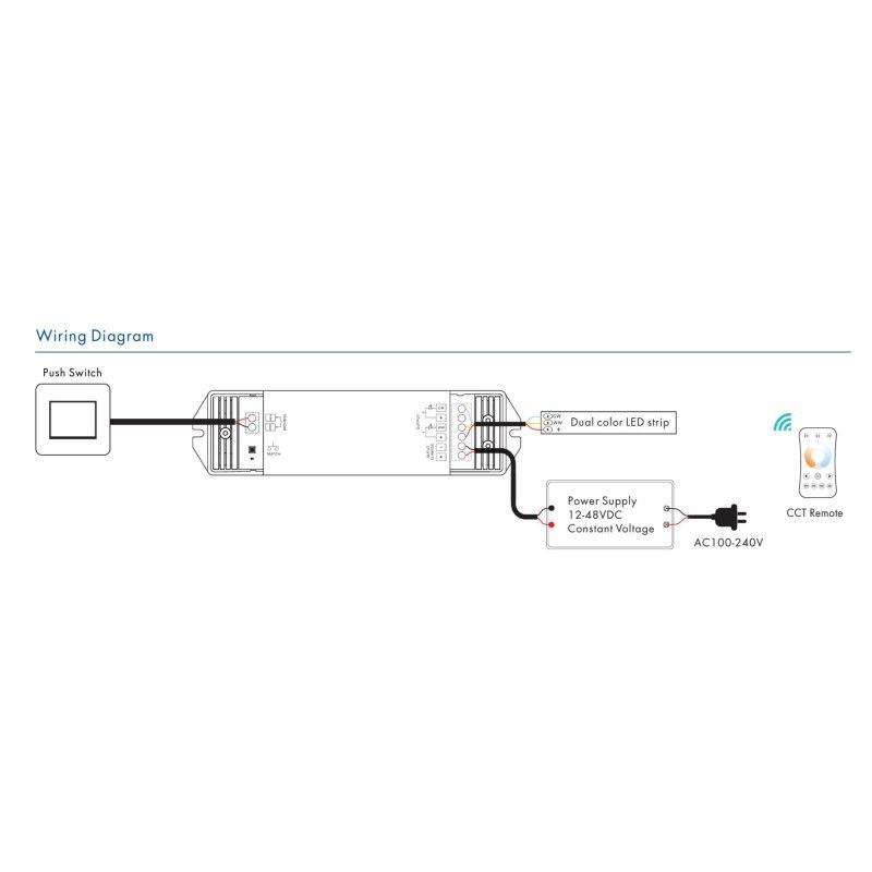 Ce Contrôleur CCT a été conçu pour offrir une flexibilité maximale et une gestion pratique de l'éclairage en permettant d'ajuster la température de couleur souhaitée entre le blanc chaud, le blanc neutre et le blanc froid.