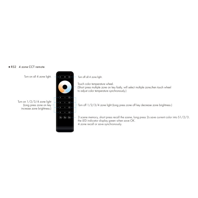 Télécommande LED monochrome/CCT - 4 zones / 3 scènes - SK-RS2 - Skydance