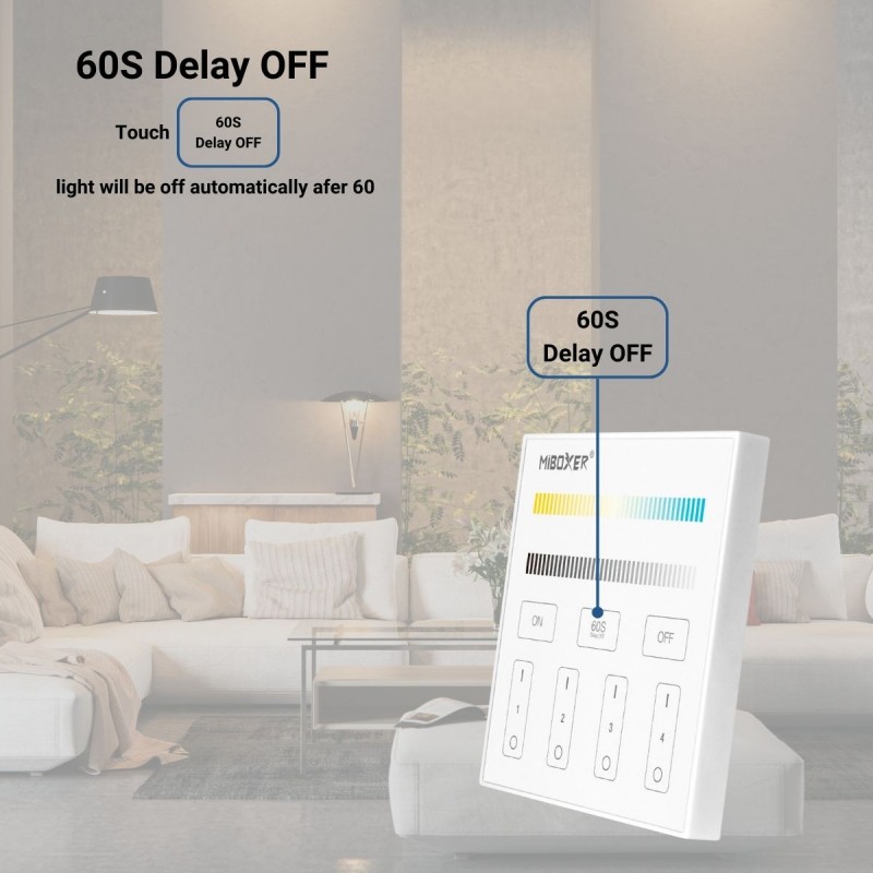 Cette télécommande permet de contrôler jusqu'à 4 zones simultanément ou indépendamment, offrant ainsi la possibilité de personnaliser la luminosité et la température de couleur pour chaque espace. Une solution moderne conforme aux dernières tendances en matière d'éclairage d'intérieur.