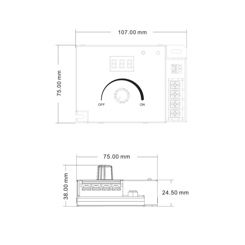 Variateur monochrome 12-48V DC 20A avec roue - Courbe logarithmique et fréquence PWM sélectionnable