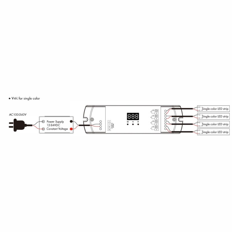 Contrôleur monochrome/ CCT/ RGB/ RGBW 12-24V DC - 4 canaux - Programmable - RF 2.4GHz - Skydance