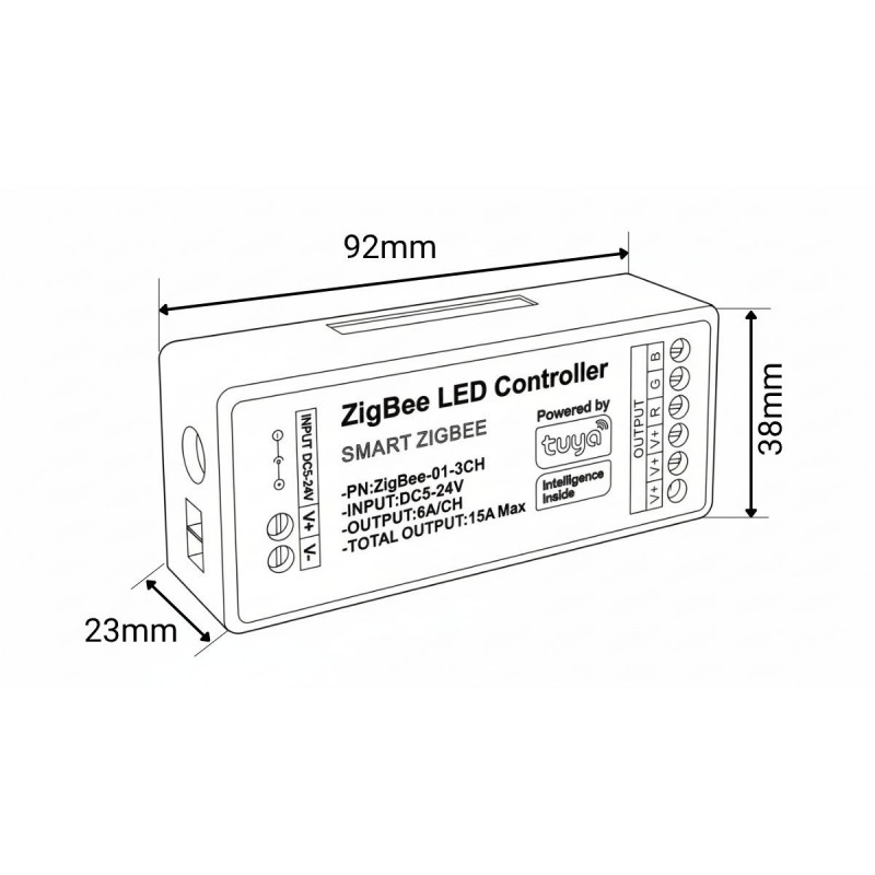 Conçu pour gérer les bandes LED dans les systèmes d'automatisation. Sa compatibilité avec Zigbee et la plateforme TUYA SMART lui permet de s'intégrer facilement dans les solutions domotiques modernes, en apportant contrôle à distance, efficacité et flexibilité.