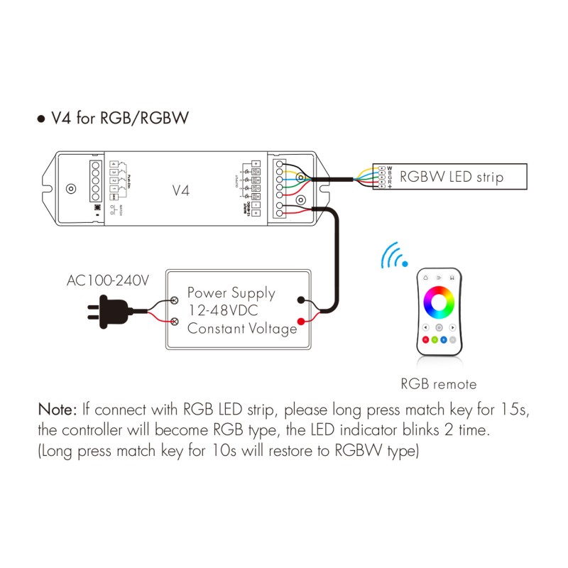 Contrôleur variateur RGBW / RGB / CCT / monochrome 12-48V DC - 20A (5A/canal) - RF 2.4G - Dimmer PUSH - Skydance