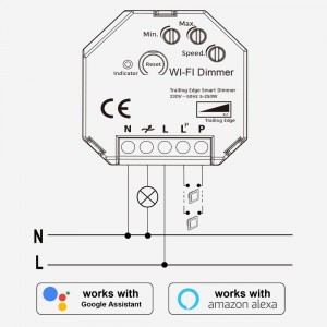 Variateur SMART WIFI 250W Tuya APP. Ce variateur de lumière vous permet de contrôler l'intensité de la lumière à l'aide d'une touche PUSH ou de tout autre appareil compatible avec l'application Tuya APP. Il est compatible avec la plupart des lampes LED à gradation. Il fonctionne également avec les transformateurs halogènes ou électroniques et les éclairages à incandescence. Grâce à l'application TUYA, il est possible d'effectuer un contrôle vocal sans fil avecAlexa ouGoogle Home.