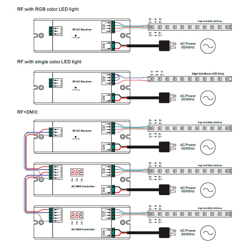 Variateur RGB 230V-AC récepteur RF (3 Canaux 1.2A/Ch) - SUNRICHER Perfect RF