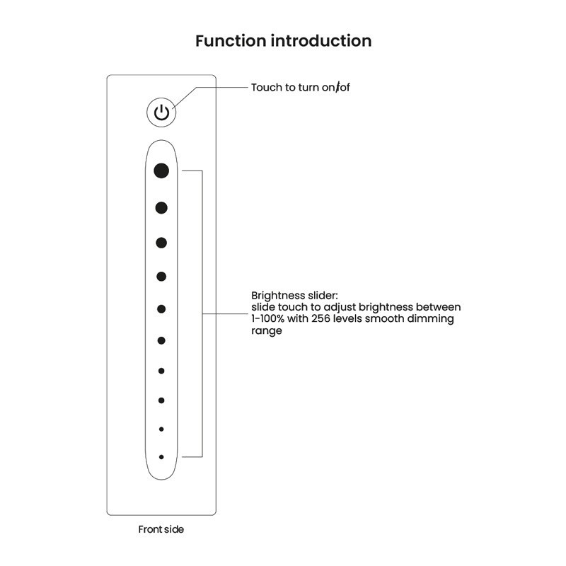 - Curseur tactile ultra-sensible et très stable, contrôle rapide et précis de la luminosité.