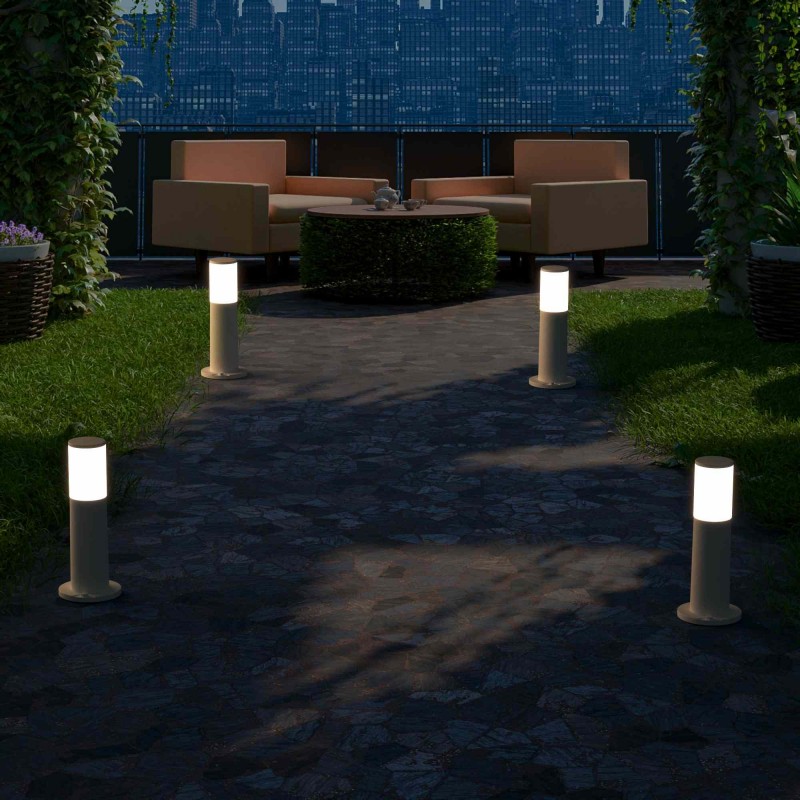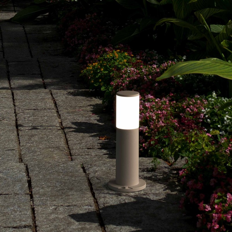 Potelet d’éclairage pour chemins de taille intermédiaire (40 cm), au design moderne en forme tubulaire, fabriqué en résine antichoc, résistante à l’oxydation, à la corrosion et aux rayons UV.