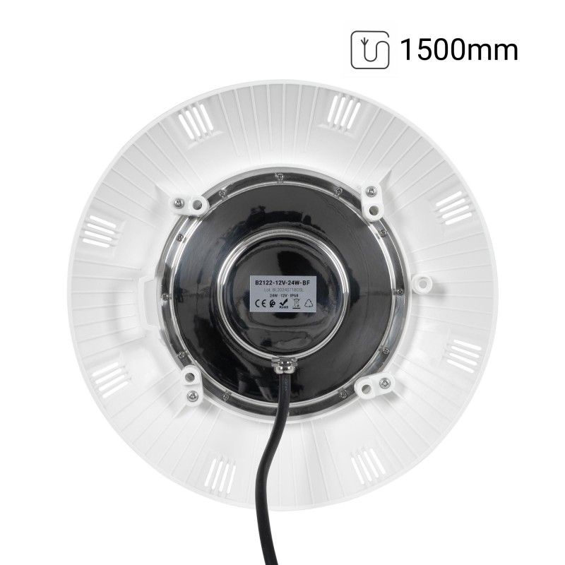 Projecteur LED submersible pour piscine en fibre - 12V AC - 24W - IP68 - Ø295mm