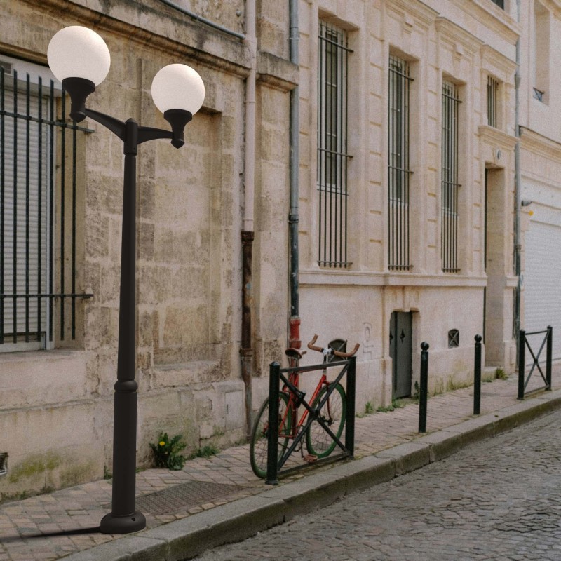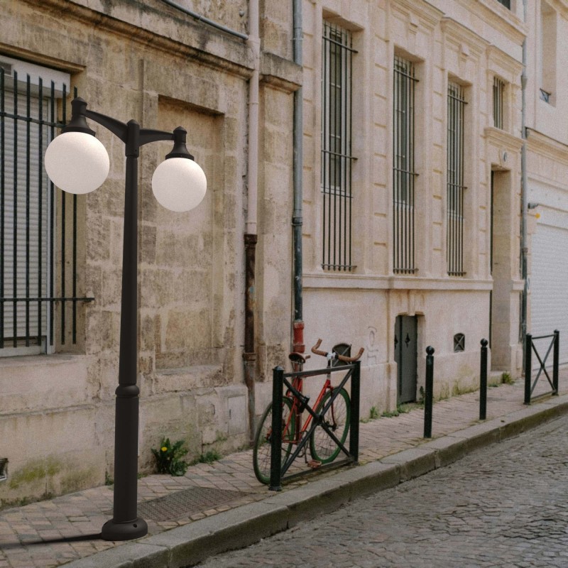 Lampadaire d'extérieur Fumagalli "GLOBE 400 MODERN" avec double diffuseur globe opale.