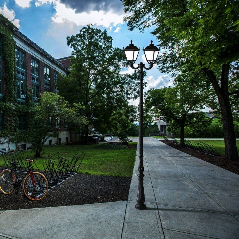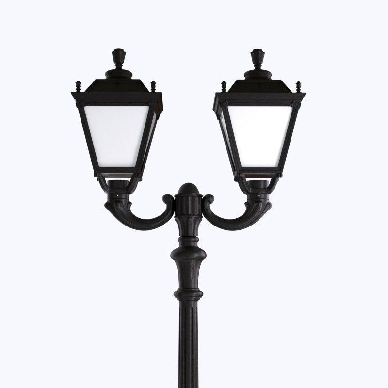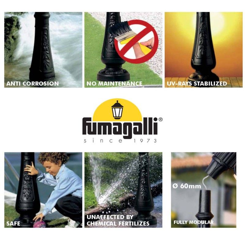 Offre la solidité d'un mât métallique avec les avantages uniques de la résine : résistance totale à la corrosion et à l'oxydation, pas d'entretien. Comprend deux diffuseurs de style classique, opale ou transparent.