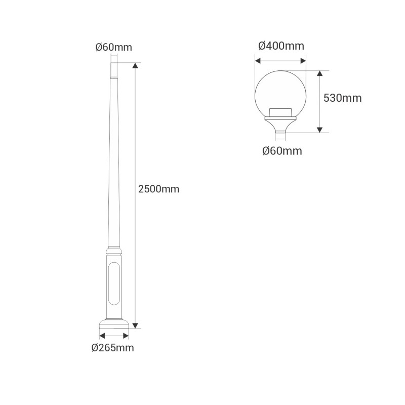 Mât d'éclairage extérieur "GLOBE 400 MODERN" Fumagalli - 4 options - E27